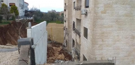 وأوضح الردايدة أنه أثناء الكشف الحسي، تبين أن طول الجدار الذي يبلغ 15 مترًا قد انهار بالكامل، من دون أن يلحق أذى وأضرارًا بشرية، في حين تسبب بعيوب إنشائية تمثلت بكسر في خط الصرف الصحي، وسقوط جزء من أرضية الموقف، مشيرا إلى أن إحدى قواعد الترس الجانبي في إحدى الشقق الملاصقة للحفرية آيلة للسقوط.