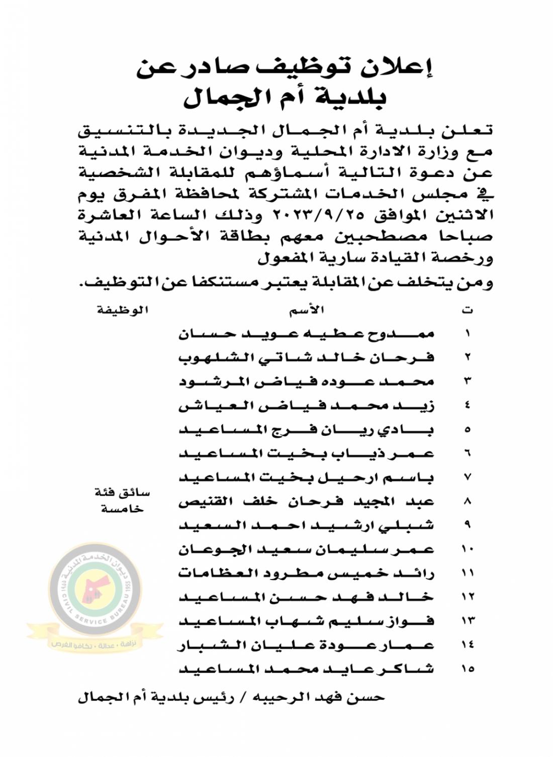 كما أعلن عن وظائف شاغرة بالتنسيق مع الوزارات والمؤسسات الحكومية .
