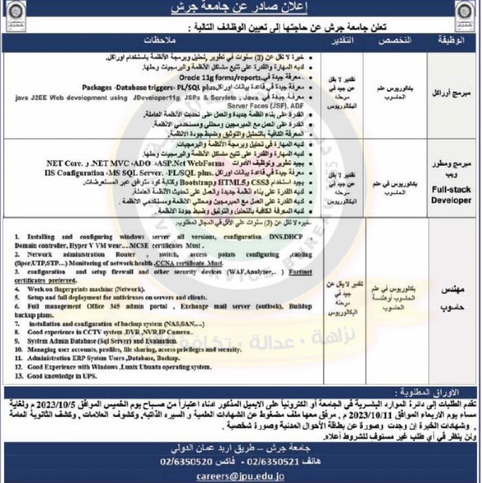 كما أعلن عن وظائف شاغرة بالتنسيق مع الوزارات والمؤسسات الحكومية .