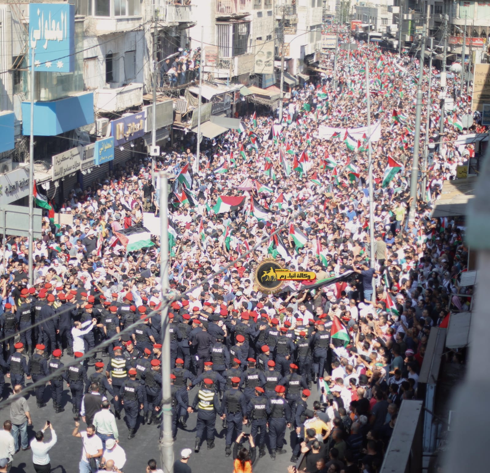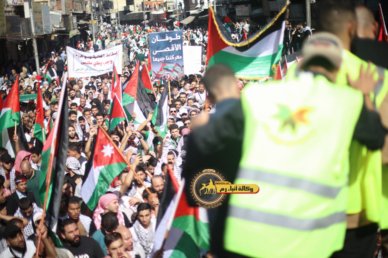 الراي نيوز - احتشد آلاف الأردنيين منذ ساعات الصباح الباكر من اليوم الجمعة؛ للمشاركة في مسيرات ضخمة في معظم محافظات المملكة دعما للمقاومة الفلسطينية.
