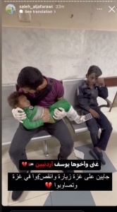 نشر الناشط الفلسطيني صالح الجعفراوي مقطع فيديو على انستجرام يفيد بإصابة طفل واخرى اردنيين في العدوان الاسرائيلي على غزة، ووفقًا للفيديو المنشور فإنهم كانوا في زيارة لغزة.