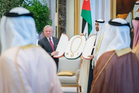 الراي نيوز  - تسلم جلالة الملك عبد الله الثاني ابن الحسين، من سمو الشيخ محمد بن زايد آل نهيان رئيس دولة الإمارات العربية المتحدة، "وسام زايد"، وهو أعلى وسام في دولة الإمارات العربية المتحدة.