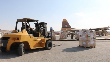 الراي نيوز - أرسلت الهيئة الخيرية الأردنية الهاشمية طائرة مساعدات إغاثية جديدة إلى قطاع غزة، بالتعاون مع وزارة الخارجية وشؤون المغتربين والقوات المسلحة الأردنية/ سلاح الجو والأجهزة الأمنية، وبالتنسيق مع جمهورية مصر العربية لإيصالها من خلال معبر رفح وإدخالها إلى القطاع المحاصر.