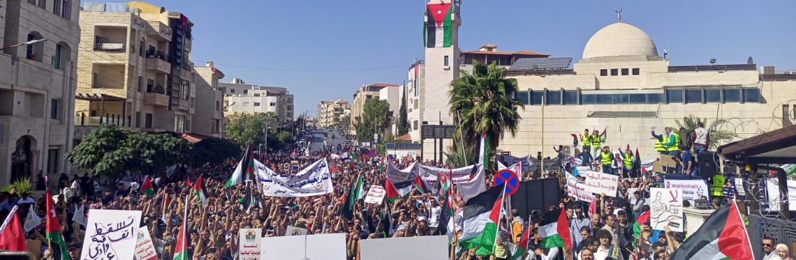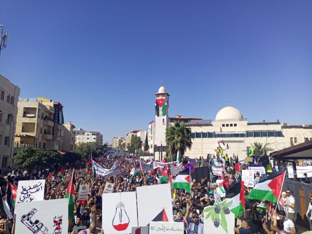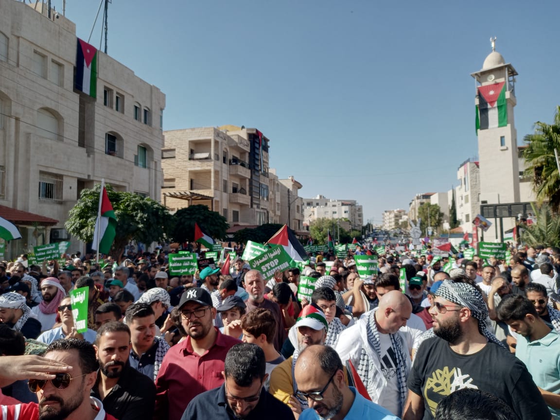 وتأتي المسيرة، ضمن سلسلة فعاليات شارك فيها الأردنيون نصرة للقضية الفلسطينية ودعما للمقاومة الباسلة في قطاع غزة، وتأكيدا على موقف الشعب الأردني المساند لشقيقه الفلسطيني.