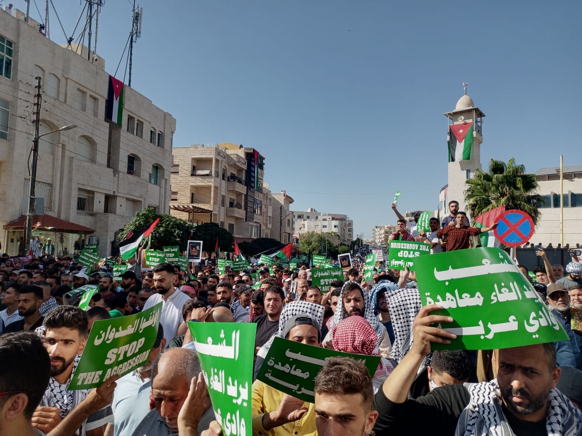 ودعا المشاركون جميع الأنظمة الرسمية العربية لإلغاء كافة الاتفاقيات والمعاهدات والتفاهمات مع هذا العدو الغاشم ووقف مسلسل الهرولة نحو التطبيع، وعلى رأسها دعوة الحكومة الأردنية لإلغاء اتفاقية وادي عربة التي تحل ذكراها المشؤومة بالتزامن مع ما يرتكبه الاحتلال من مجازر آثمة بحق المدنيين العُزّل من أهل غزة المحاصرين منذ 17 عاما.