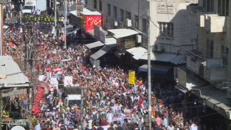 كما انطلقت مسيرة في محافظة الزرقاء مطالبة بحماية المدنيين في قطاع غزة من العدوان الإسرائيلي.