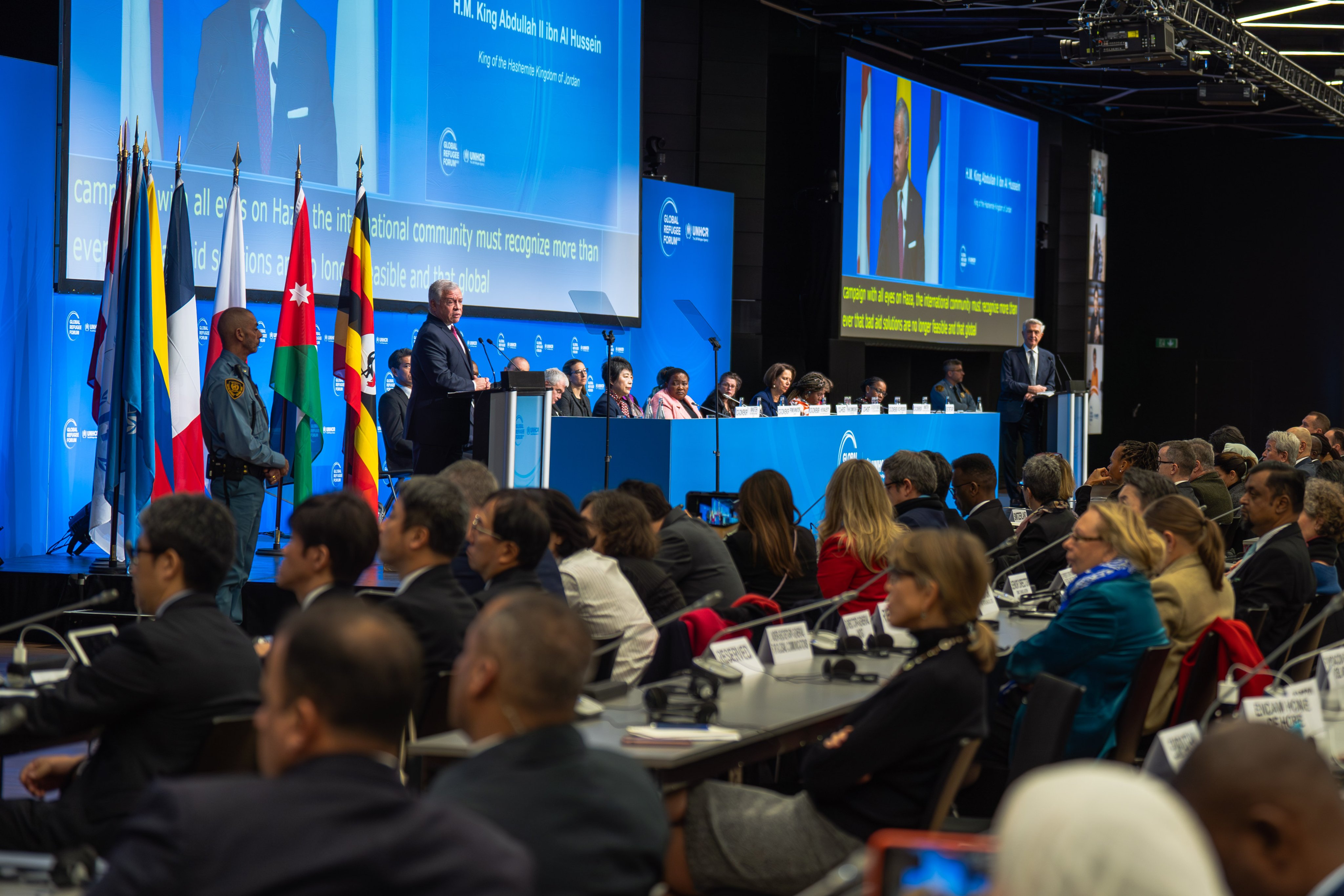 القى جلالة الملك عبدالله الثاني، الأربعاء، كلمة في المنتدى العالمي للاجئين، الذي يعقده الأردن بالشراكة مع كولومبيا وفرنسا واليابان وأوغندا، وتستضيفه حكومة سويسرا بالشراكة مع المفوضية السامية للأمم المتحدة لشؤون اللاجئين.