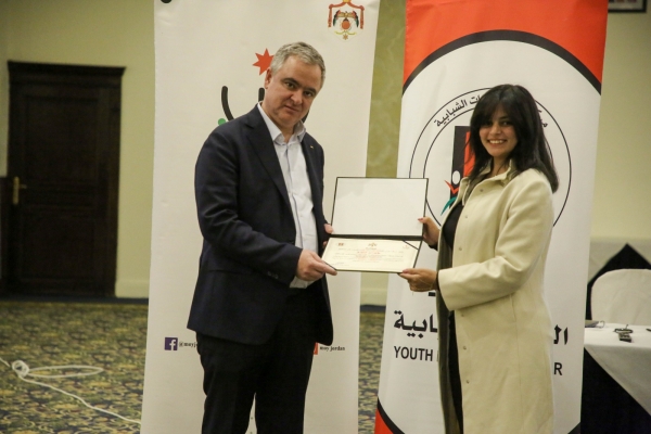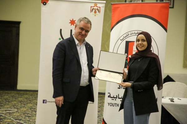 وخلال الجلسة ألقت المشاركة منيه الغويري كلمة الخريجين، أثنت خلالها على ما اكتسبه الشباب من مهارات ومعارف.