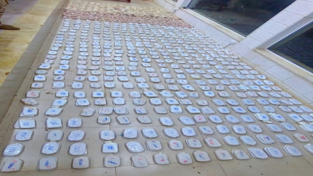 • العثور على (537) ألف حبة من مخدر الكبتاغون، و(888) كف حشيش، وكميات من الذخائر