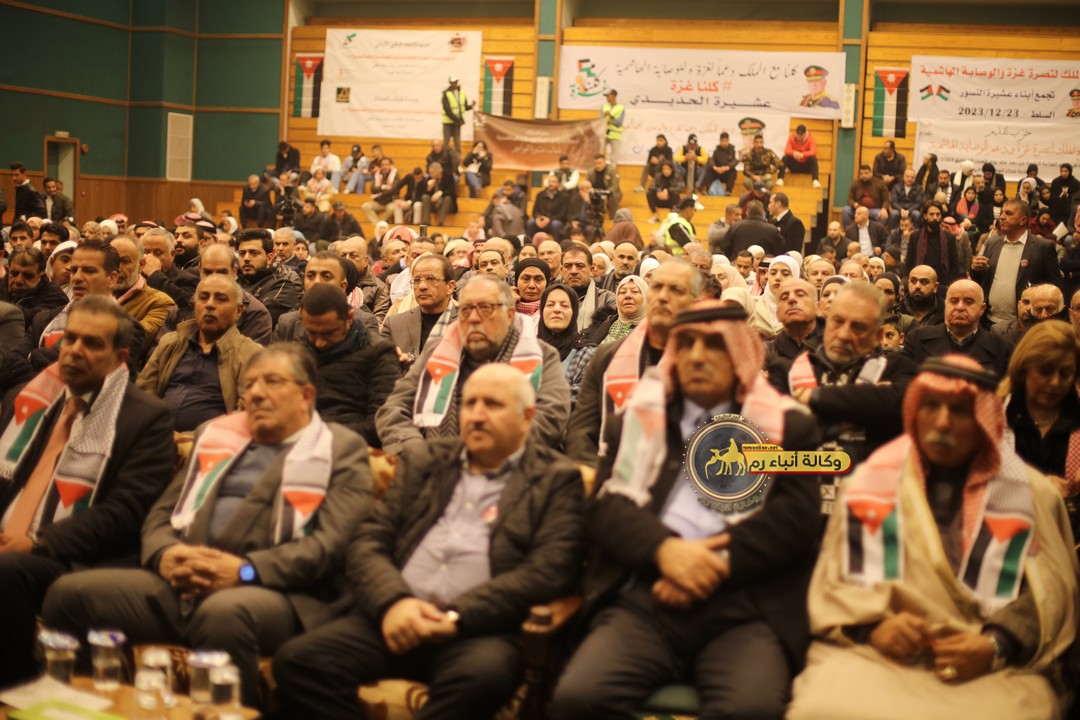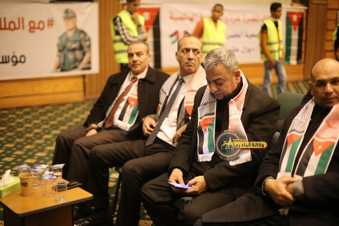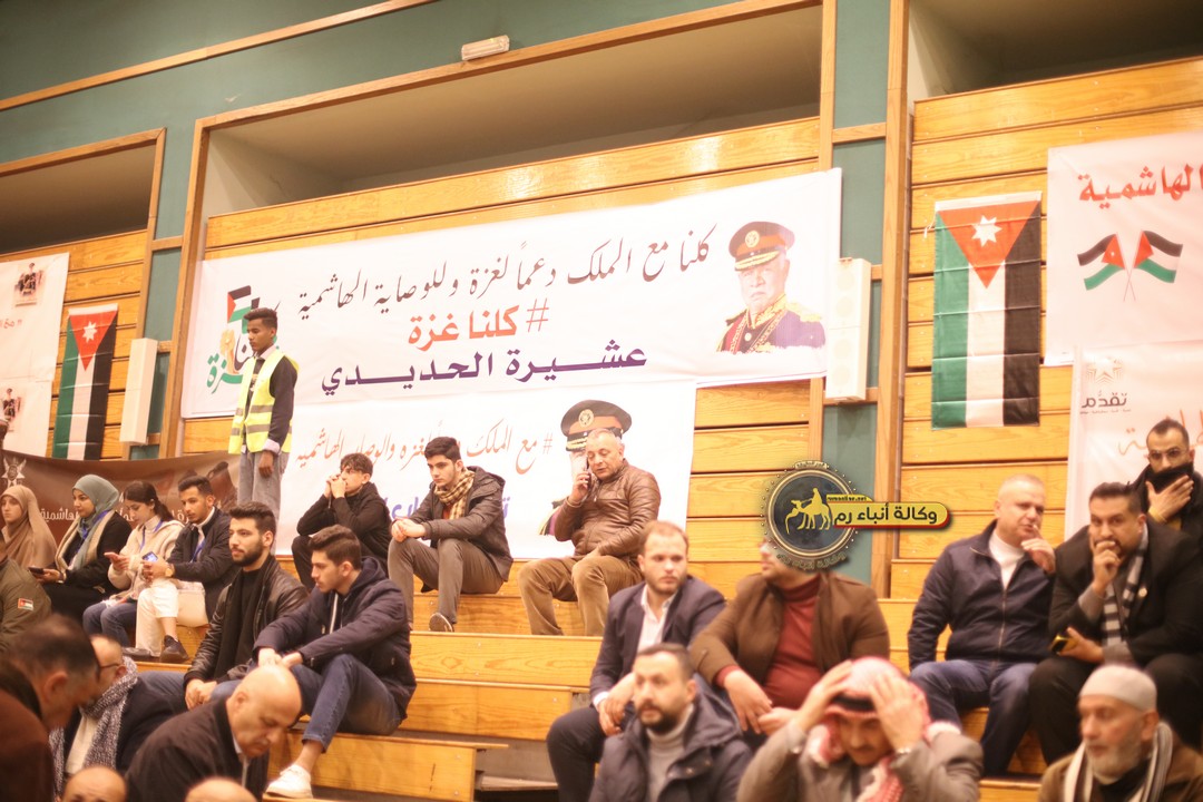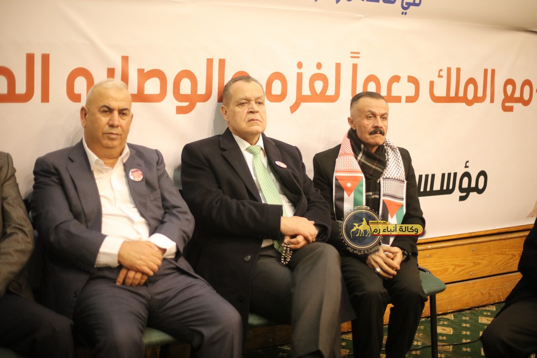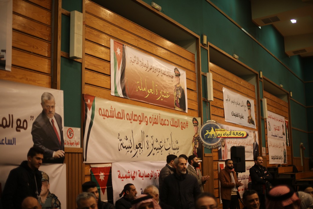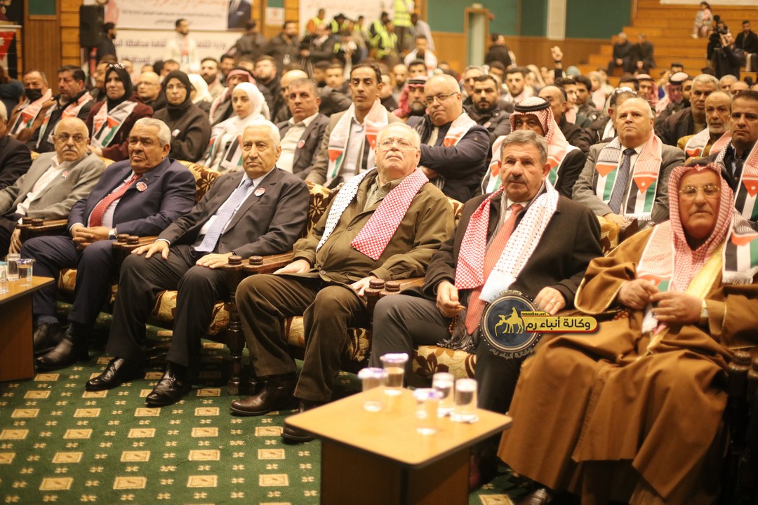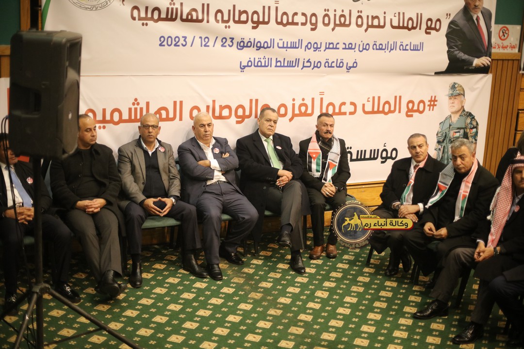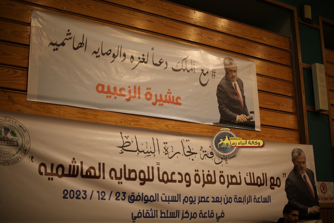 "مع الملك نصرة لغزة و دعماً للوصاية الهاشمية " على ضرورة رص الصفوف وتوحيد الصف ليبقى الاردن القوي المنيع الداعم بكل طاقته بالدفاع عن الاهل في دولة فلسطين العربية المحتلة .