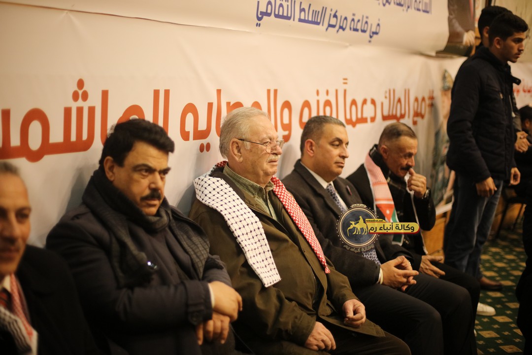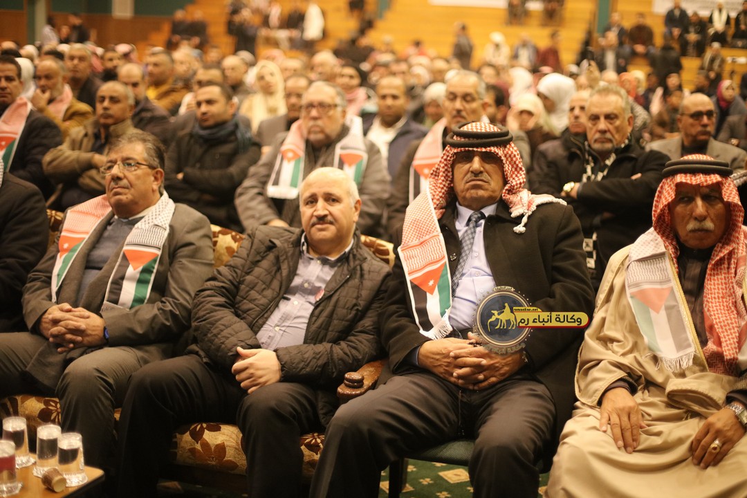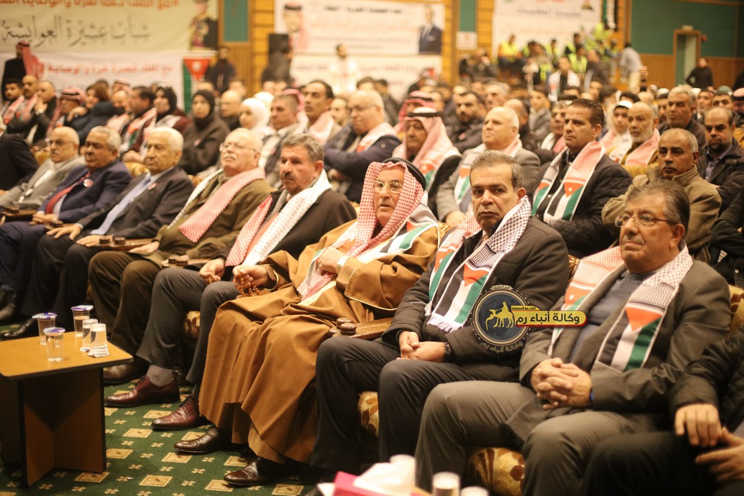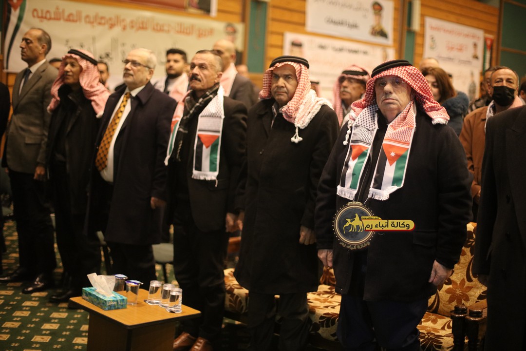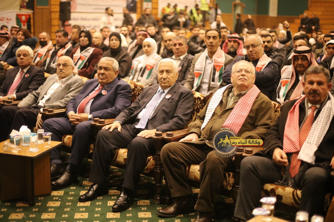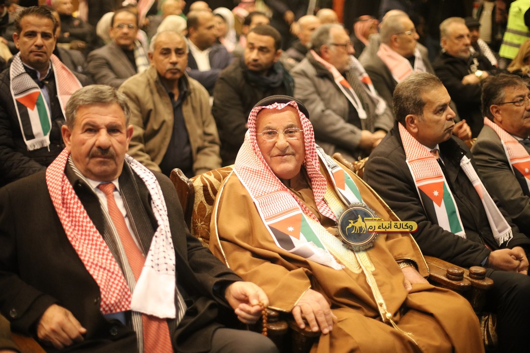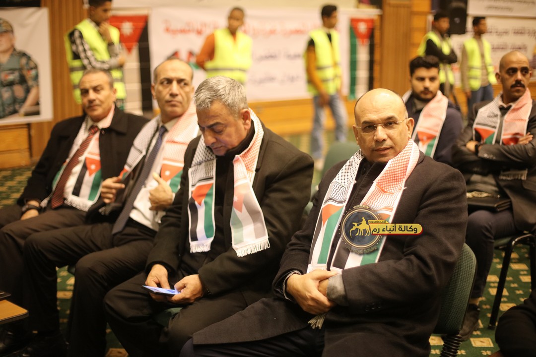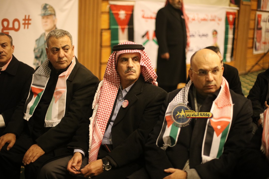 "مع الملك نصرة لغزة و دعماً للوصاية الهاشمية " على ضرورة رص الصفوف وتوحيد الصف ليبقى الاردن القوي المنيع الداعم بكل طاقته بالدفاع عن الاهل في دولة فلسطين العربية المحتلة .