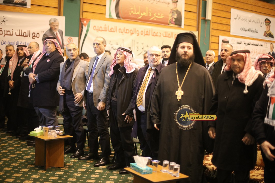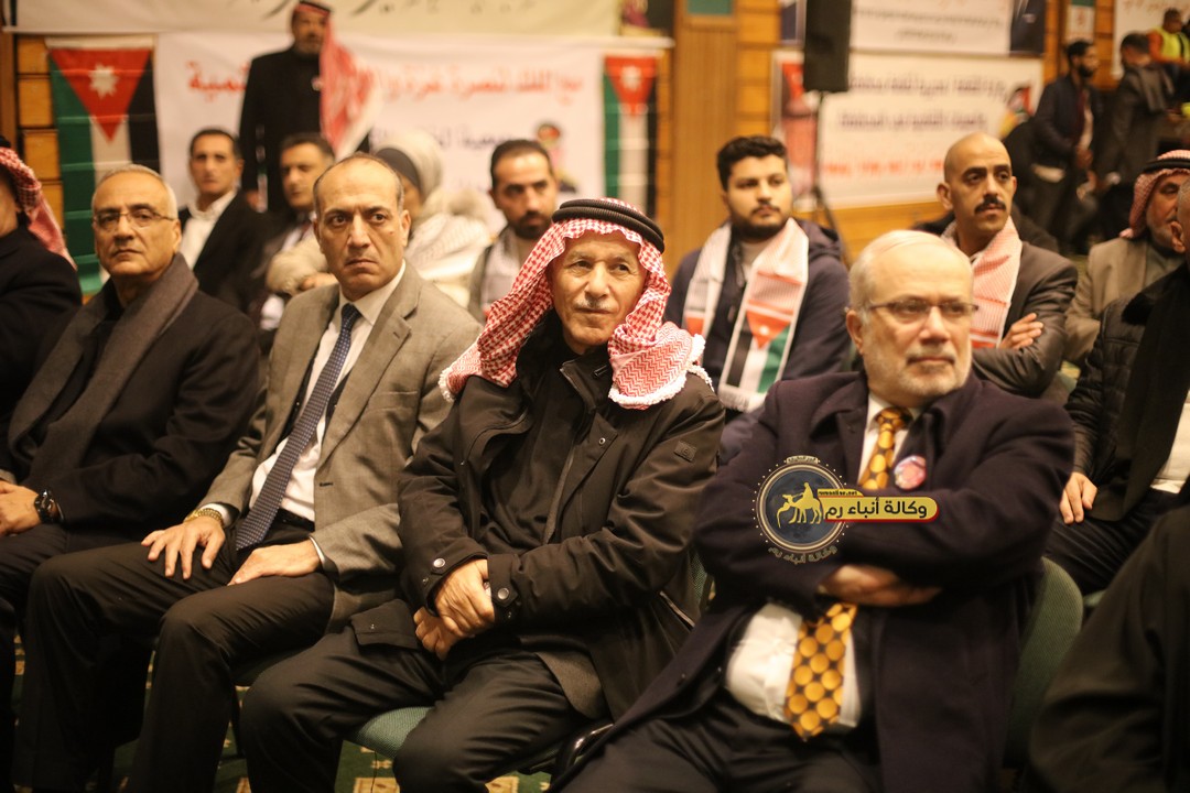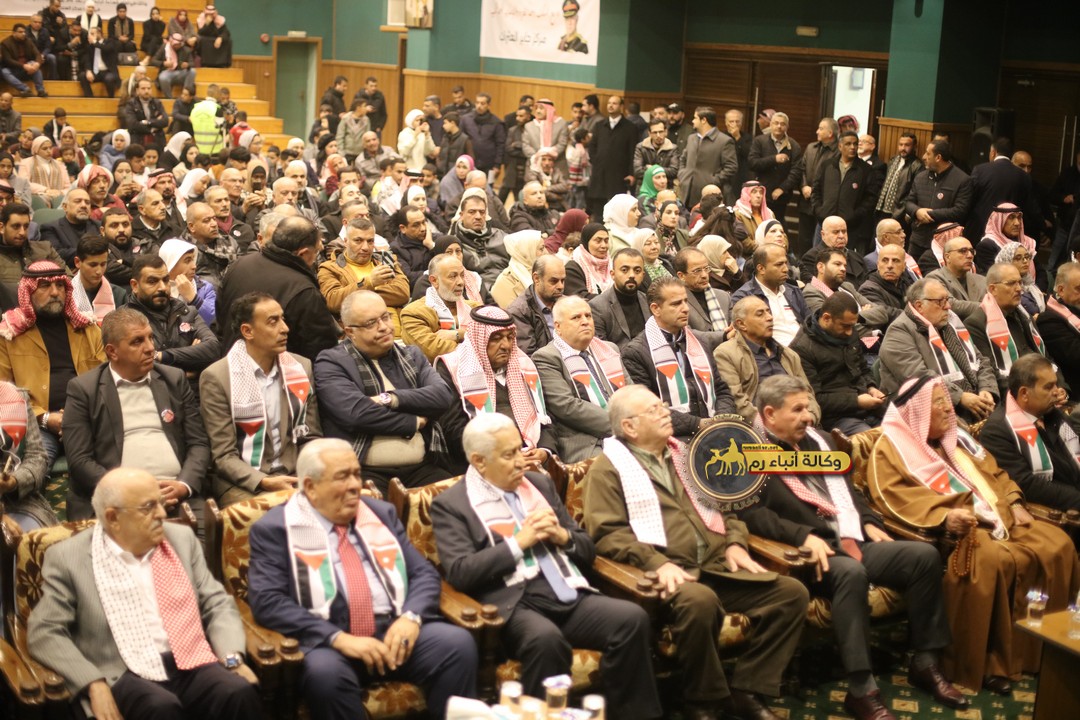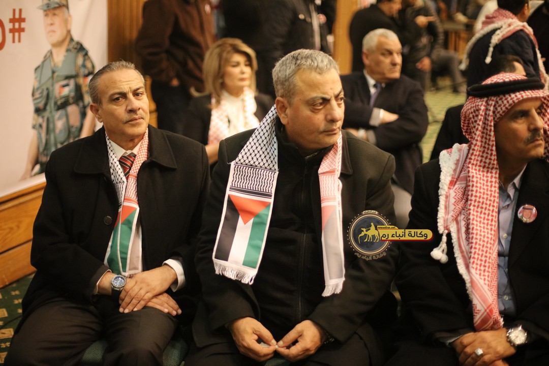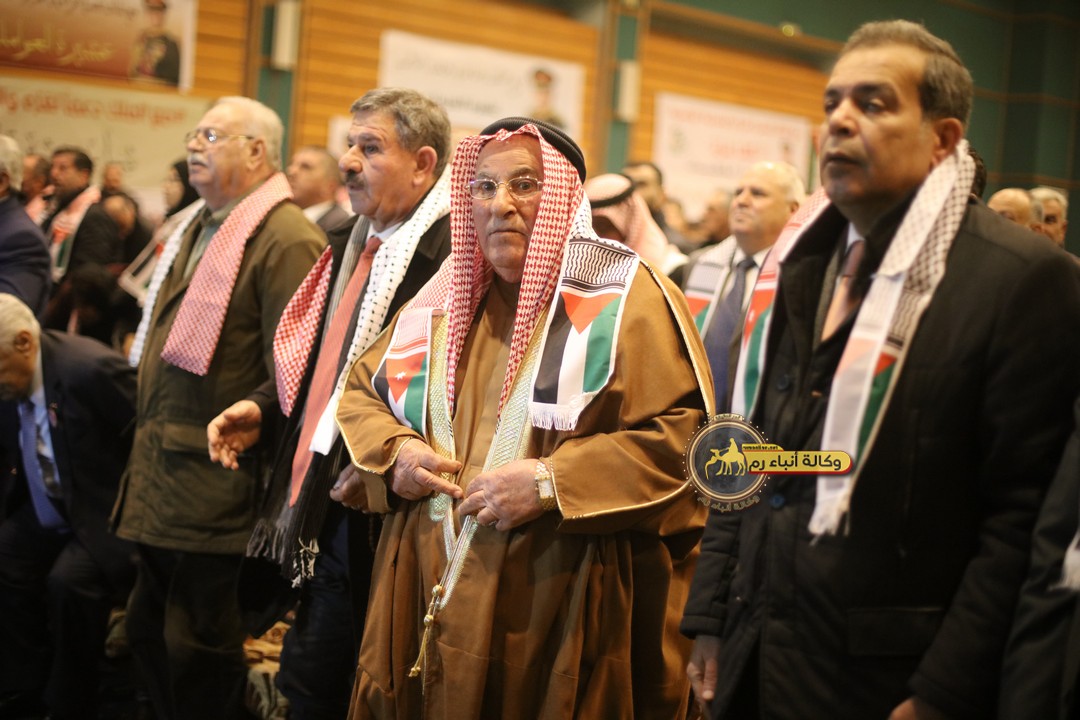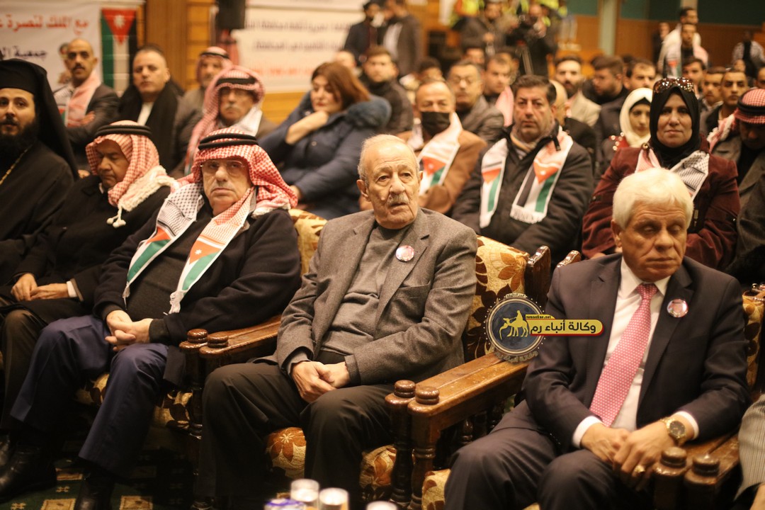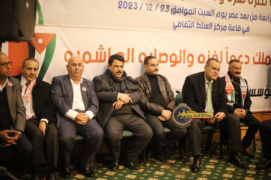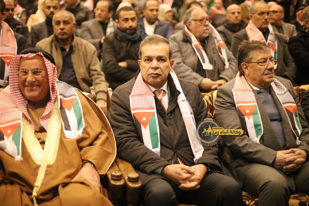 "مع الملك نصرة لغزة و دعماً للوصاية الهاشمية " على ضرورة رص الصفوف وتوحيد الصف ليبقى الاردن القوي المنيع الداعم بكل طاقته بالدفاع عن الاهل في دولة فلسطين العربية المحتلة .