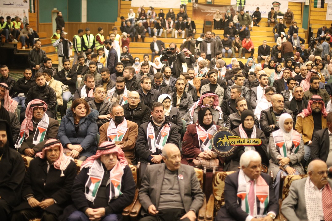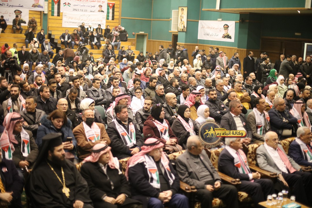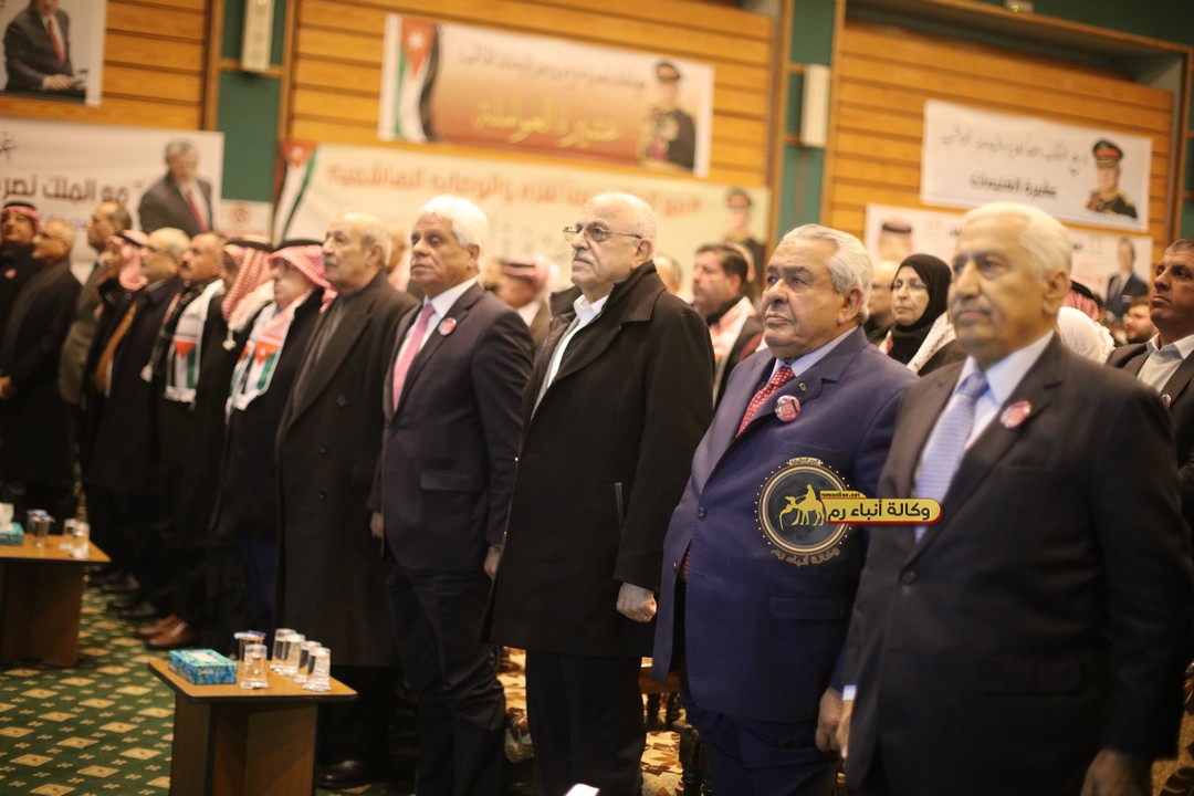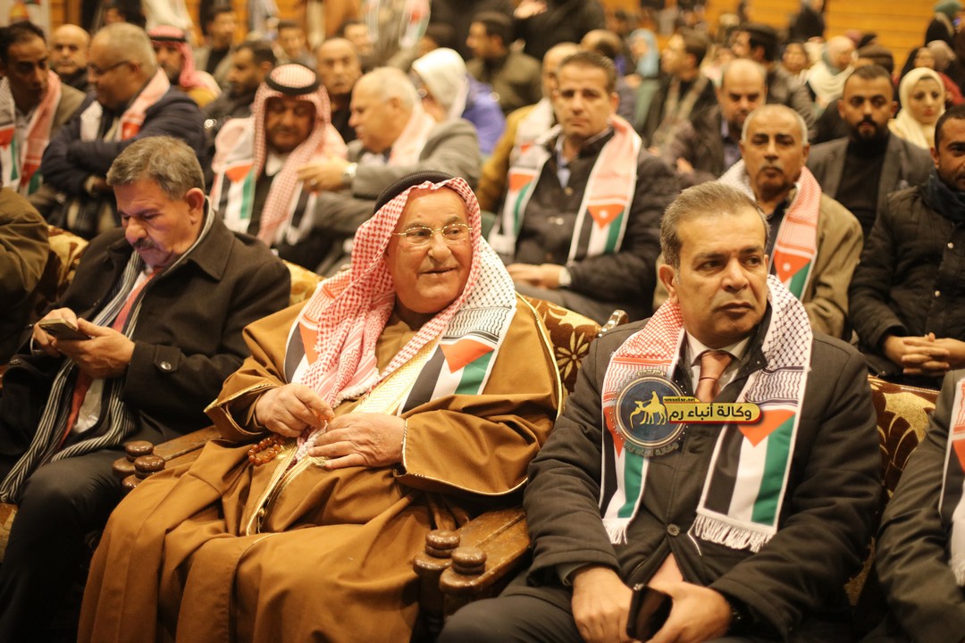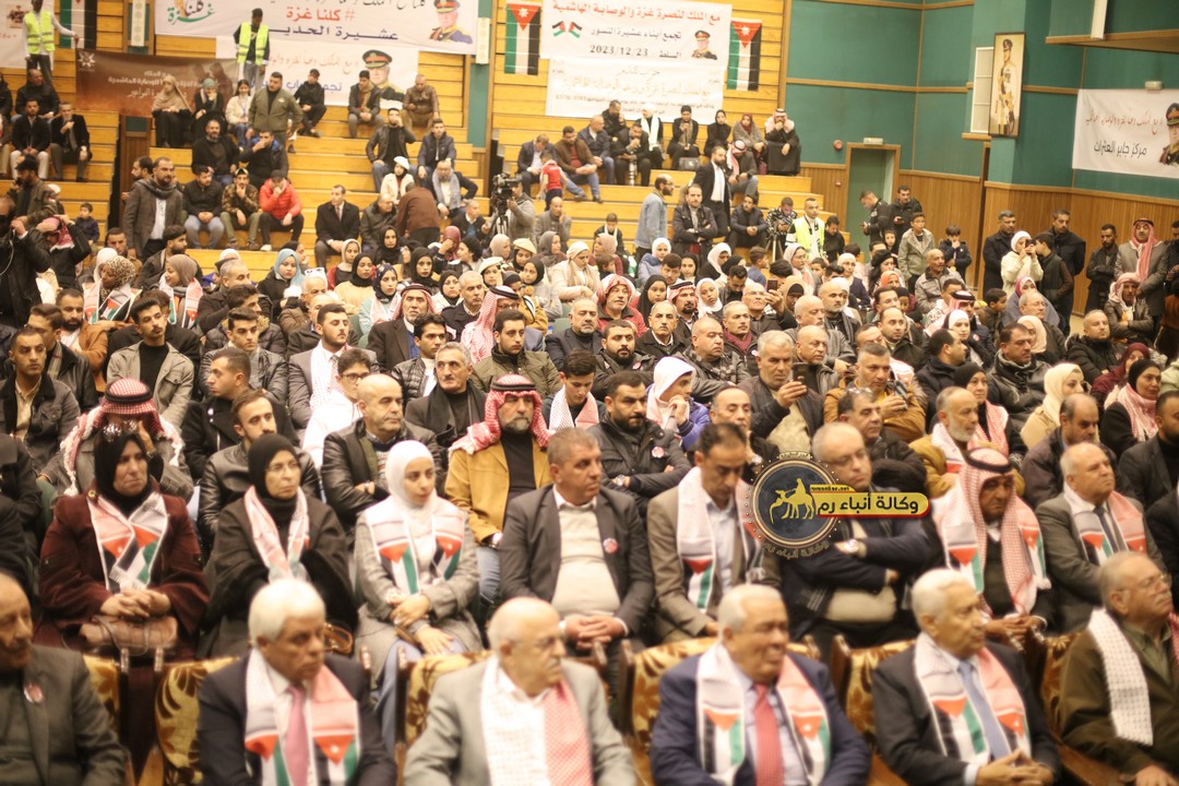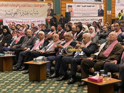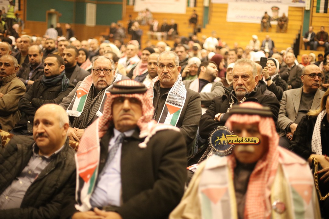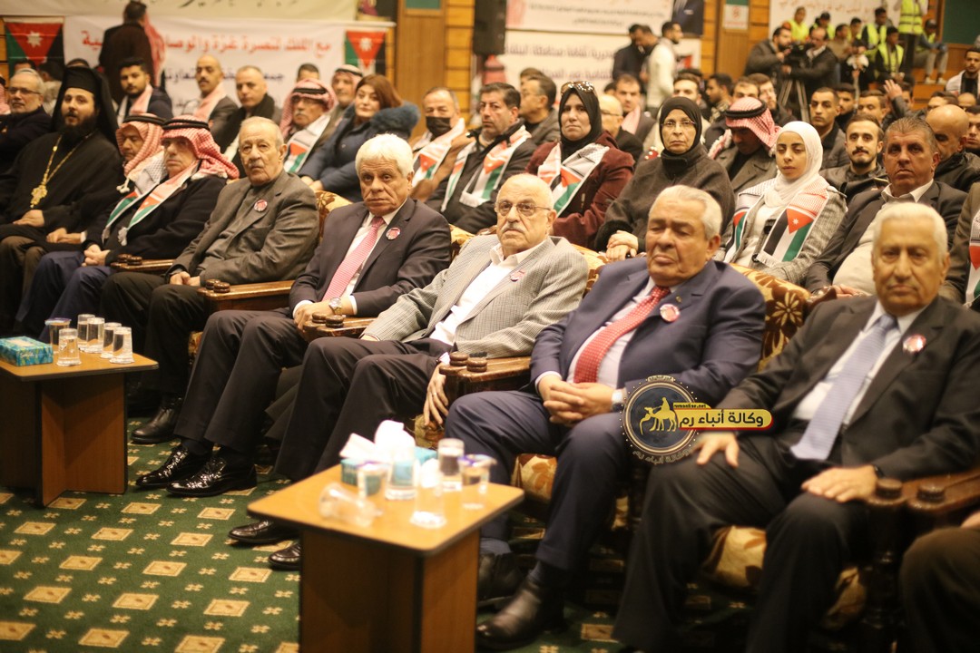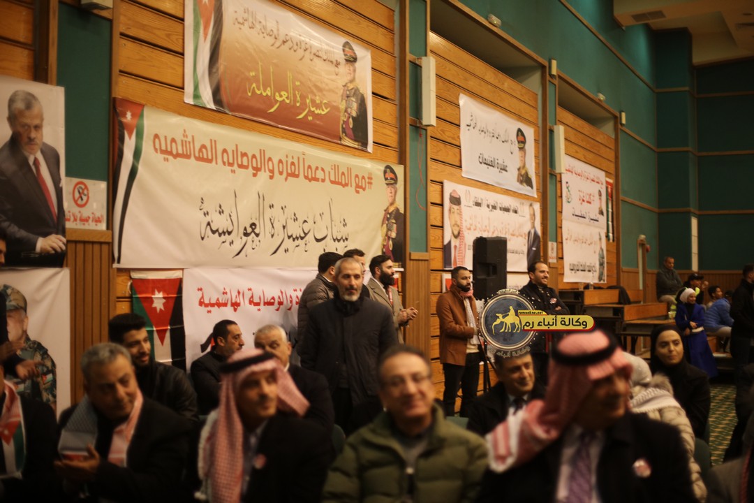 "مع الملك نصرة لغزة و دعماً للوصاية الهاشمية " على ضرورة رص الصفوف وتوحيد الصف ليبقى الاردن القوي المنيع الداعم بكل طاقته بالدفاع عن الاهل في دولة فلسطين العربية المحتلة .