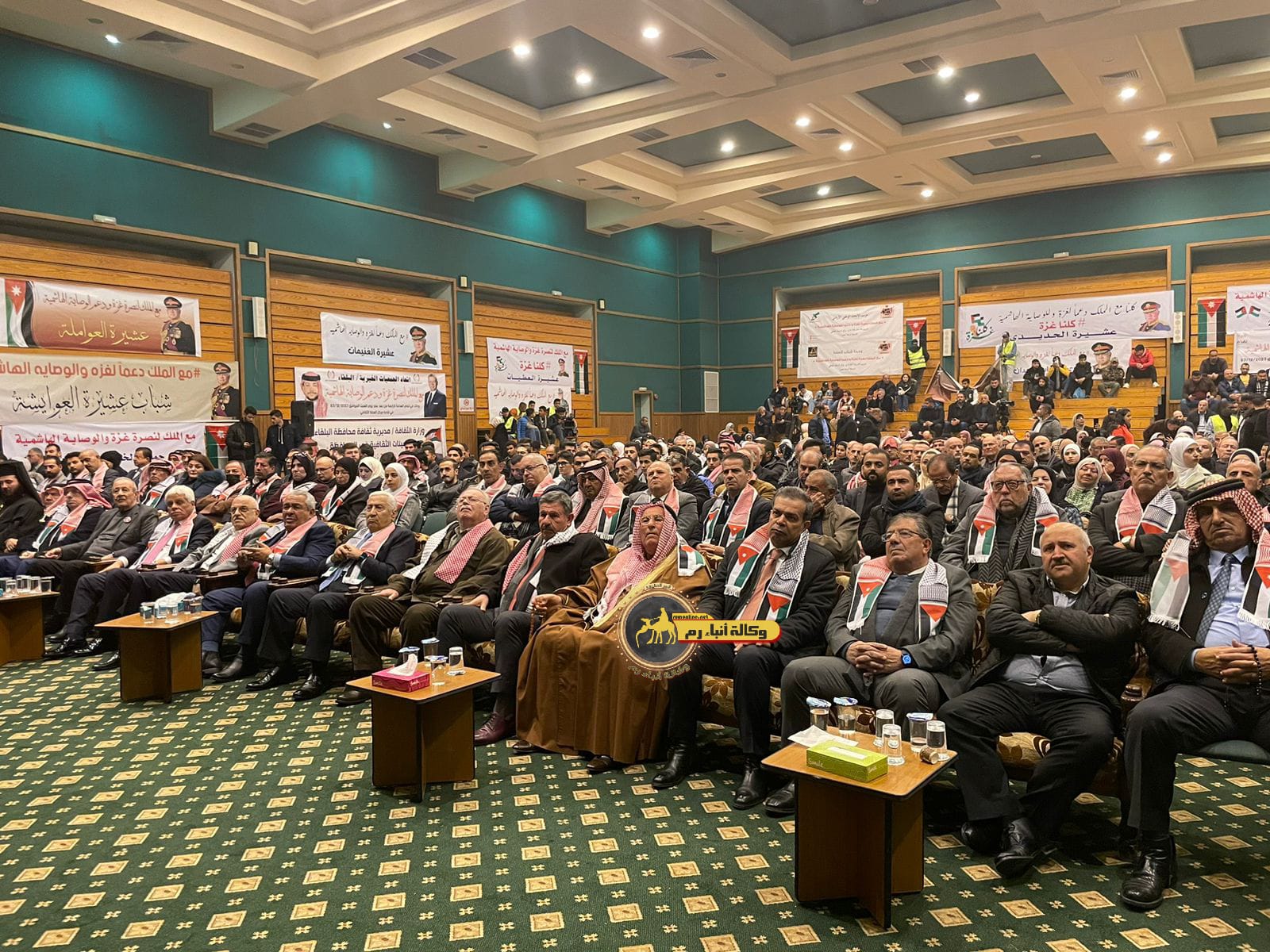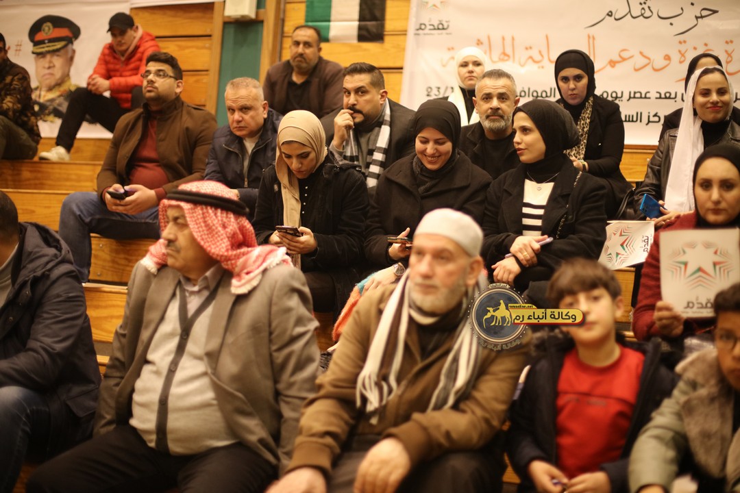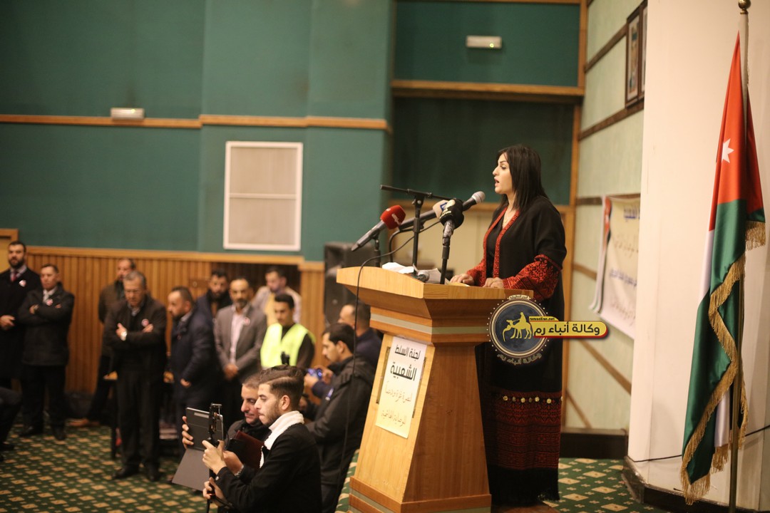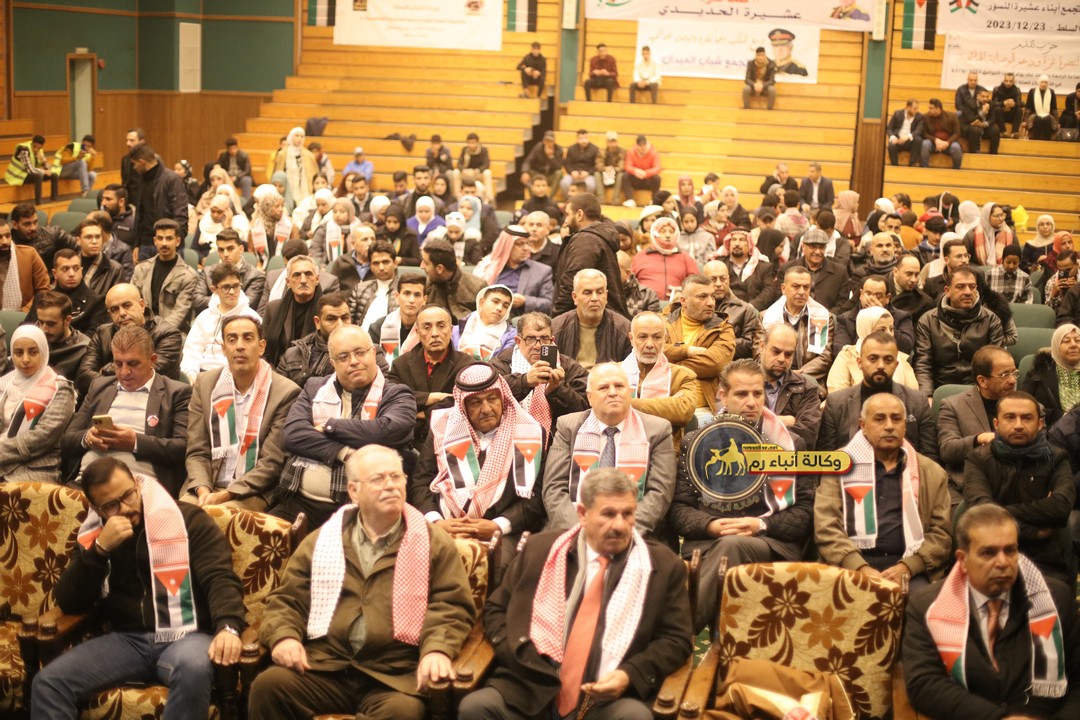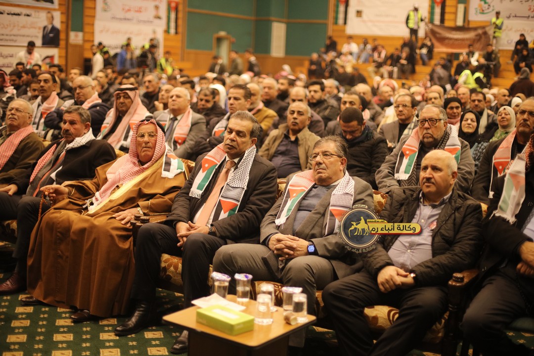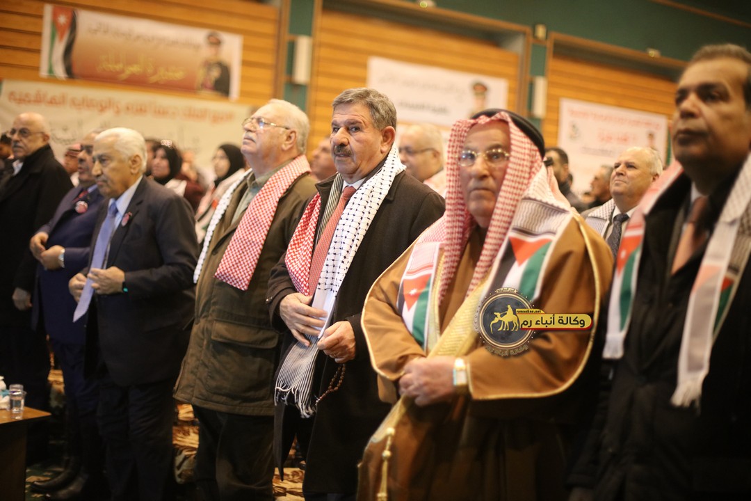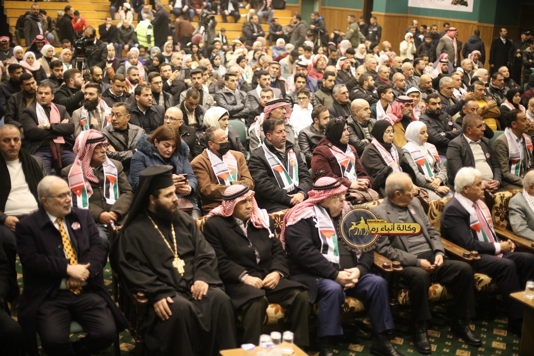 "مع الملك نصرة لغزة و دعماً للوصاية الهاشمية " على ضرورة رص الصفوف وتوحيد الصف ليبقى الاردن القوي المنيع الداعم بكل طاقته بالدفاع عن الاهل في دولة فلسطين العربية المحتلة .