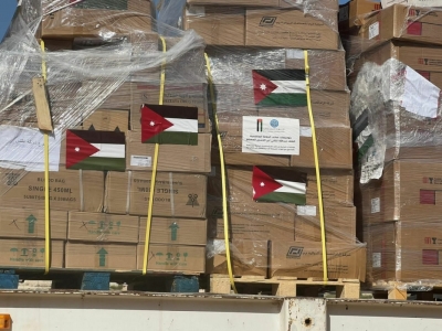 وقال مصدر في الأمن العام إن 26 شاحنة تابعة للبرنامج العالمي عبرت من الأراضي الأردنية من معبر الشيخ حسين باتجاه معبر كرم أبو سالم ومنه إلى قطاع غزة.