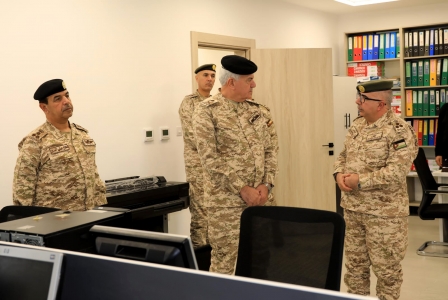 وجال رئيس هيئة الأركان المشتركة في مختلف مرافق المبنى الذي يتألف من 3 طوابق وطابق خدمات وبمساحة إجمالية 1800 متر مربع، والذي يمتاز باعتماده على أنظمة البناء الحديثة بما في ذلك مقاومة الزلازل وأنظمة توفير الطاقة الكهربائية.