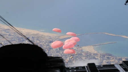 وشاركت في عملية الإنزال الجوي التي استهدفت عدد من المواقع في شمال القطاع طائرتين من نوع (C130) تابعتين لسلاح الجو الملكي الأردني، وطائرة تابعة لجمهورية مصر العربية الشقيقة، إضافةً إلى طائرة تابعة للولايات المتحدة الأمريكية، وطائرة تابعة لمملكة بلجيكا.