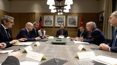 وحضر اللقاء نائب رئيس الوزراء وزير الخارجية وشؤون المغتربين أيمن الصفدي، ومدير مكتب جلالة الملك، جعفر حسان، والوفد المرافق للمستشار شولتس، والسفير الألماني لدى المملكة بيرترام فون مولتكه.