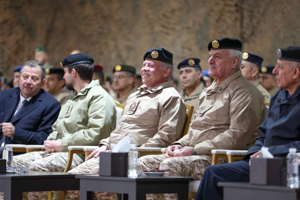 وأعرب جلالة الملك، بحضور رئيس هيئة الأركان المشتركة اللواء الركن يوسف أحمد الحنيطي، عن تقديره لمنتسبي القوات المسلحة والأجهزة الأمنية، مشيدا بمستواهم المتميز في أداء واجباتهم ومهامهم.