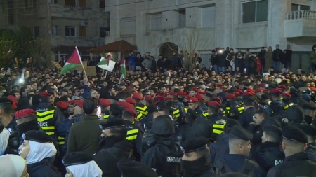 وقدرت الأعداد بالآلاف بالرغم من برودة الطقس وصعوبة الوصول للمكان بسبب إغلاق المداخل المؤدية للسفارة الإسرائيلية في عمان.