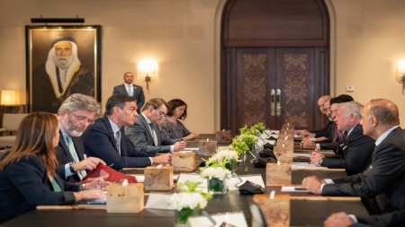 استقبل جلالة الملك عبدالله الثاني رئيس الوزراء الإسباني بيدرو سانشيز، بحضورالأمير الحسين بن عبدالله الثاني، ولي العهد، وأكد ضرورة وقف الحرب على قطاع غزة وحماية المدنيين، ومضاعفة توفير المساعدات الإنسانية والإغاثية والطبية للقطاع واستدامتها.