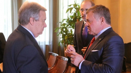 الملك وغوتيريس يؤكدان ضرورة توفير الحماية للعاملين بالإغاثة في غزة