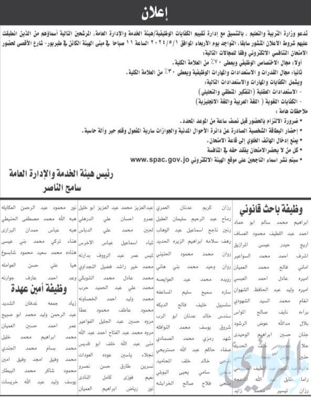الرأي نيوز- دعت عددا من الوزارات والمؤسسات الحكومية، اليوم الخميس، مرشحين للتعيين لإشغال شواغر وظيفية لديها.