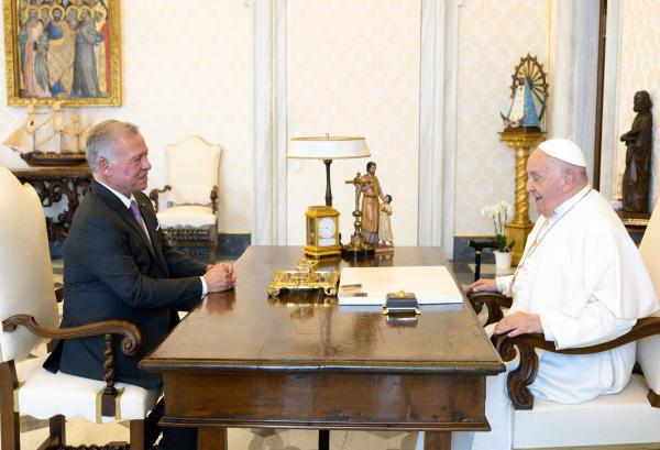 الملك يلتقي بابا الفاتيكان ويؤكد استمرار الأردن بحماية المقدسات في القدس