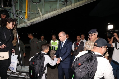 الراي نيوز - بتوجيهات سامية من جلالة الملك عبدالله الثاني، حفظه الله ورعاه، أخلى الأردن اليوم ٤٤ مواطناً أردنياً من الجمهورية اللبنانية الشقيقة، عبر طائرة عسكرية تابعة لسلاح الجو الملكي الأردني، كانت قد وصلت مطار رفيق الحريري الدولي صباح اليوم حاملة على متنها مساعدات إنسانية للشعب اللبناني الشقيق.