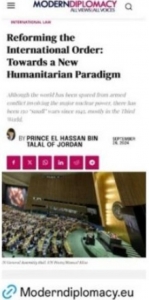 الراي نيوز - أعاد سمو ولي العهد الأمير الحسين بن عبدالله الثاني ، نشر مقال لسمو الأمير الحسن بن طلال بعنوان :إصلاح النظام الدولي: نحو نموذج إنساني جديد.