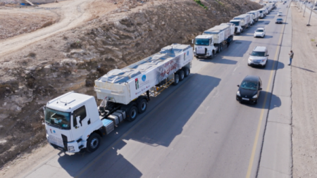 100 شاحنة مساعدات أردنية ستدخل غزة فور وقف النار