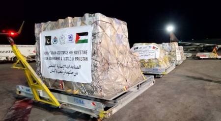 القوات المسلحة تتسلم مساعدات طبية باكستانية لصالح المرضى والمصابين في قطاع غزة