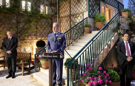 الرأي نيوز -  أقامت السفارة البريطانية في عمّان أمس الإثنين حفل استقبال لعدد من ضباط وضباط صف القوات المسلحة والأجهزة الأمنية في بيت السفير، بحضور آمر كلية ساند هيرست العسكرية الملكية البريطانية اللواء نيكولاس كاولي والذي يزور الأردن خلال الفترة الحالية.