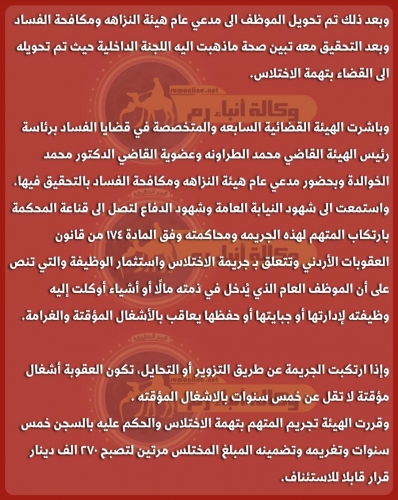 السجن لموظف تربية خمس سنوات وتضمينه مئات الآلاف .. تفاصيل مثيرة تنشرها "رم"
