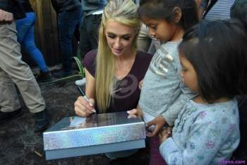 وقدّمت هيلتون المساعدة لهم وساندتهم نفسياً، حيث وزّعت زجاجات من عطورها ووسائد موقّعة منها، ومواد التجميل وأدوات منزلية، وشاركتهم في إلتقاط بعض الصور.