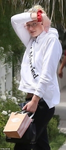 والتقطت عدسات المصورين النجمين أثناء عودتها من المطار إلي منزلهما في لوس أنجلوس حيث ارتدت صوفي تيرنر الشهيرة بـ "سانسا" وهو اسم شخصيتها في مسلسل game of thrones شارة كتب عليها "متزوجة حديثا".