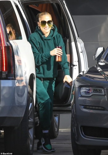 جينيفر لوبيز بإطلالة شتوية باللون الأخضر أثناء خروجها من أحد الاستديوهات..صور