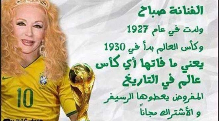وكان رواد 'فيسبوك' قد سخروا من صباح في إطار حملاتهم الدعائية لكأس العالم بالبرازيل الذي تنطلق أولى مبارياته، الخميس، بين البرازيل وكرواتيا.