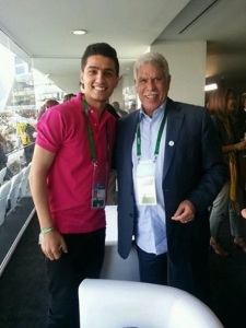 تابع محمد مباراة الافتتاح التي جرت البارحة بين البرازيل وكرواتيا من قلب ملعب "أرينا كورينثيانز" بحسب الصور التي نشرتها الصفحة الرسمية الخاصة بالنجم الشاب على موقع التواصل الإجتماعي فايسبوك والذي ظهر فيها محمد إلى جانب تيمور مرمرشي مدير عام شركة بلاتينيوم ريكوردز التي تهتم بإنتاج وإدارة أعمال محمد إضافة إلى الكابتن حسن شحاته.