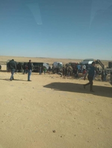 وفاة واصابة اثر تدهور تريلا على الطريق الصحراوي