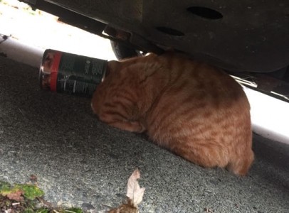 المفرق .. الدفاع المدني ينقذ قطة علق رأسها بعلبة