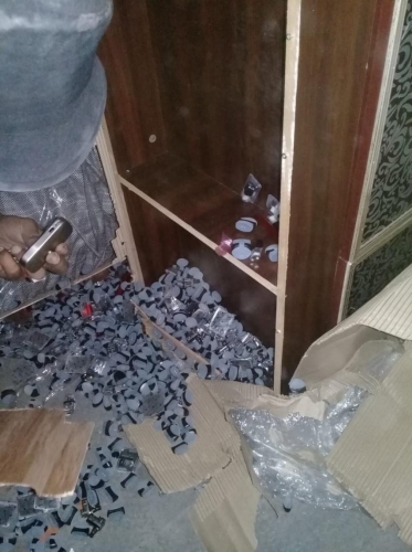 وأضاف النمري ان موظفي المركز قاموا بتتبع المسار الجمركي للبراد ولحظة دخوله للساحة الجمركية حيث تولدت شكوك كبيرة بوجود مواد مهربة داخل الحمولة وبناء عليه تم تنزيل كامل المحتويات وتفتيشها بشكل دقيق وعلى اثر ذلك تم ضبط المهربات ضمن مخابىء سرية في خزائن وطاولات خشبية حيث صممت قواطع خشبية ضمن الاثاث لغايات تهريب "الأراجيل" الالكترونية ولوازمها.