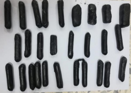 واضاف الناطق الاعلامي انه تم اخراج ٢٨ بالوناً من جسده بداخلها ٣٤١ حبة مخدرة وقطع من مادة الحشيش المخدرة وكمية من بودرة الحشيش الصناعي .