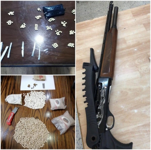 وفي البادية الوسطى / اللبن القي القبض على شخص بحقه ثلاثة طلبات أمنية داخل مركبته وضبط بحوزته سلاح ناري وكمية من المواد المخدرة، وضبط في محافظة المفرق٦٠٠٠ حبة مخدرة بحوزة احد المروجين بعد مداهمته.