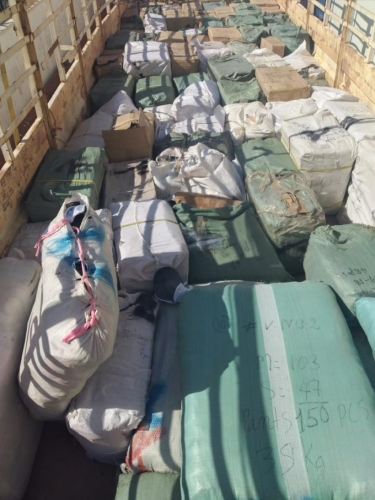 كما تم ضبط شاحنة محملة بملابس واجهزة كهربائية وأدوات صحية مختلفة وغيرها من البضائع قادمة من العقبة بالتعاون مع مديرية جمرك العقبة.