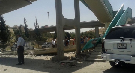 تسببت شاحنة بانهيار جسر مشاة على طريق عين غزال قرب لواء ماركا شمال عمان ظهر اليوم السبت.