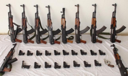وبحسب المصدر فإن المضبوطات عبارة عن 50 مسدساً عيار 7 ملم ٬ و4 رشاشات