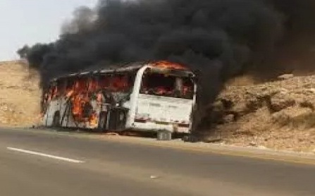 احتراق حافلة معتمرين أردنية على الحدود الاردنية السعودية