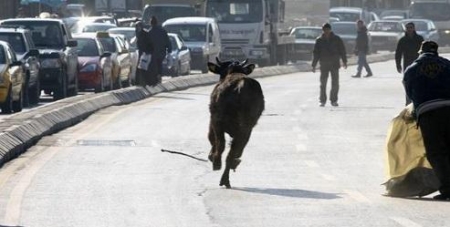 الإمساك بالعجل الهائج٬ لكن من دون جدوى٬ فاضطروا لإطلاق الرصاص صوبه٬