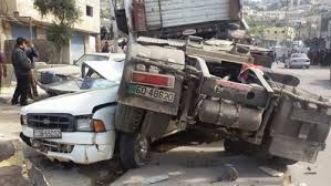 اصيب 3 اشخاص بجروح وكسور اثر حادث تصادم بين (بك اب) وتريلا على طريق عنجرة عجلون.